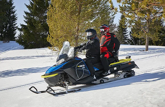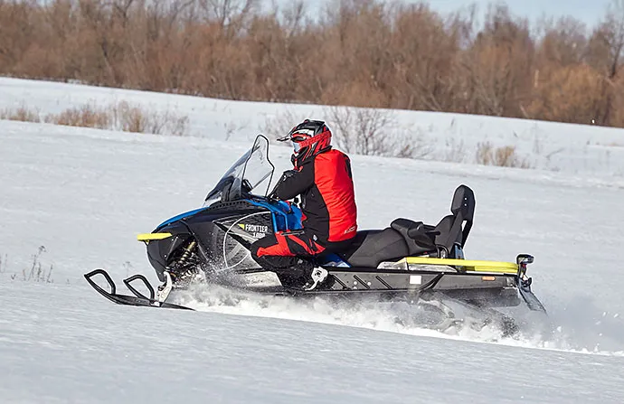 Снегоход энергономичен: перед поездкой можно легко отрегулировать высоту руля и жесткость подвески. Тепла и комфорта добавят подогрев рукояток и курка газа, розетки для обогрева визеров на шлемах водителя и пассажира. Ручки для пассажира оснащены ветро-защитой и подогревом. Возможность за счет съемного модульного сидения увеличить багажное пространство. Приборная панель оптимально информативна для дальней поездки — все это делает «FRONTIER 1000» идеальным снежным крузером.