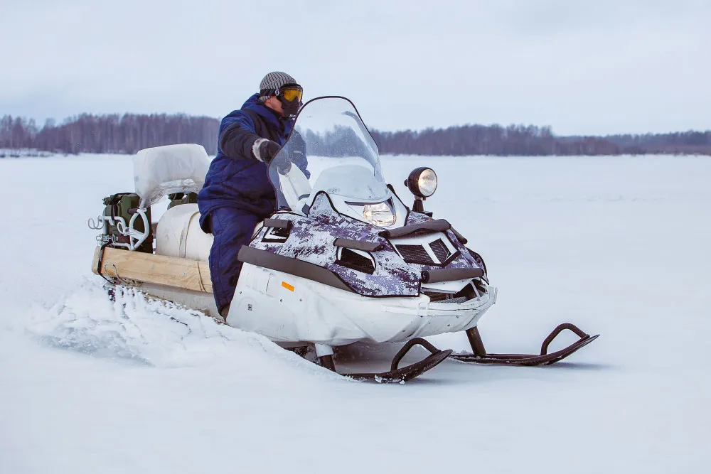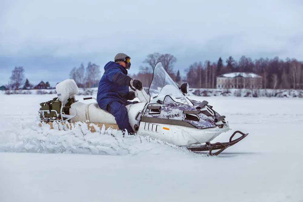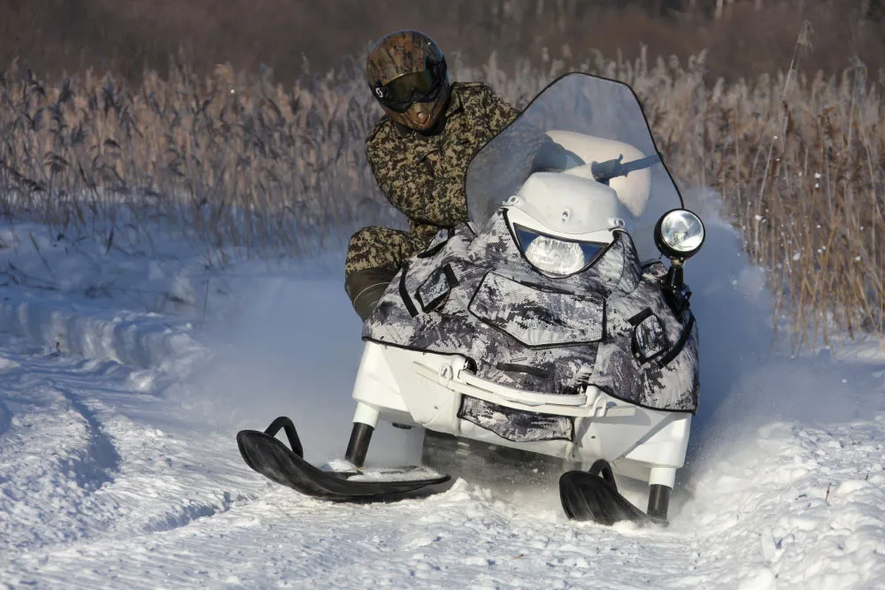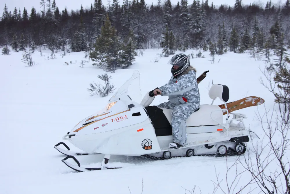 Одна из ключевых особенностей модели заключается в том, что снегоход можно использовать при плюсовых температурах на малых скоростях и при транспортировке тяжелых грузов.